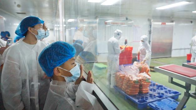 活动伊始,在科普讲师和工作人员的带领下,亲子家庭参观了多满分南沙中央厨房。大家在了解现代化食品加工流程的同时,也见证了“一份热气腾腾的学生营养餐是如何通过当天切配、烹调、分餐,经历重重食安监督,最终送达学校”。通过参观,大家直观地了解到食品从“源头”到“餐桌”的全过程,进一步加深了对食品加工的认识。