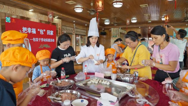 随后,全员统一乘车前往多满分生态园。营养师黄嘉丽老师以通俗易懂的方式为大家带来一场生动有趣的食育课堂。不仅结合趣味案例和互动问答讲解了营养素搭配、配料表等专业知识,还带领大家进行了包饺子烹饪劳动实践活动。家长带着小朋友大展身手,深刻体会到了劳动的快乐与价值,也加深了对均衡膳食的理解。