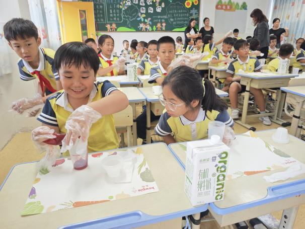 周老师以《如何正确选择饮品最健康》为题,结合中国儿童超重肥胖的现状,引导同学们清晰认识过量摄入糖分、饮用含糖饮料对健康的危害,通过讲解饮料标签,教导同学们正确识别含糖饮料,进而帮助同学们逐步养成科学的饮食习惯。期间,周老师和工作人员还带领同学们动手制作草莓奶昔,让科普知识在实践互动中更易理解和吸收。
