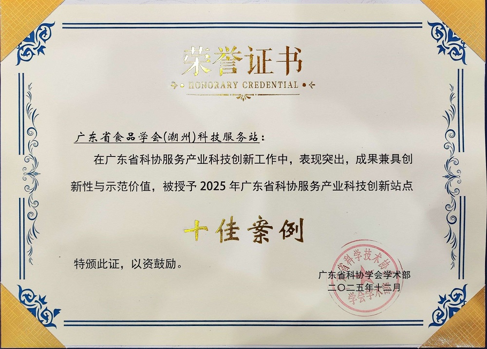 此次潮州科技服务站获评十佳案例,是学会科技服务工作的重要里程碑。未来,学会将进一步优化全省食品领域科技服务站的建设布局,强化资源统筹与服务能力,持续推动科技成果与地方产业深度融合,为广东食品产业高质量发展注入更强科技动能。