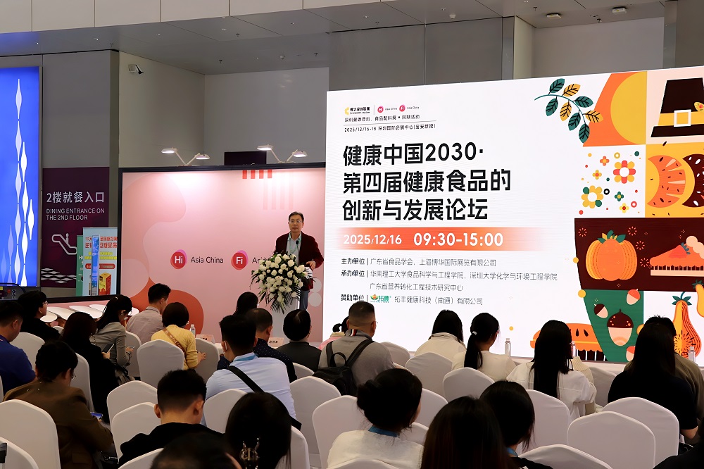 12月16日,由广东省食品学会、上海博华国际展览有限公司联合主办的“健康中国2030·第四届健康食品的创新与发展论坛”在深圳国际会展中心(宝安新馆)举行。作为“深圳健康原料、食品配料展”的核心学术配套活动,本次论坛以“健康食品创新与功效机制探索”为核心议题,吸引了省内外高校、科研院所、食品企业的100余名专家学者、产业精英齐聚一堂,共探健康食品产业的创新路径与未来方向。