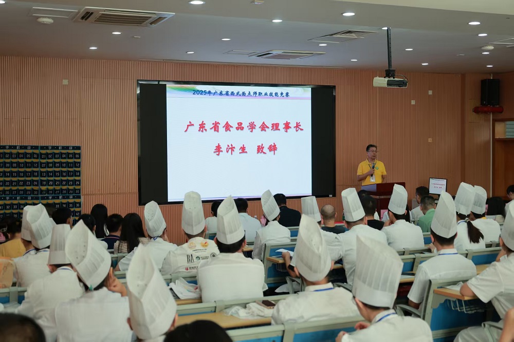 由广东省食品学会主办、中山市技师学院承办的2025年广东省西式面点师职业技能竞赛,于10月18-19日在中山市技师学院北校区圆满落幕。来自全省21个单位40名选手参赛。学会负责人、中山市技师学院有关部门领导、全体专家、裁判员、参赛选手、领队等参加开幕式,学会理事长、华南理工大学李汴生教授致开幕辞。